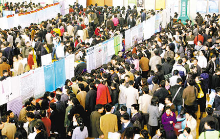 冷空气挡不住求职者的脚步,昨日上午,浙江大学2008届毕业生校园招聘会在玉泉、西溪两个校区同时举行,万名学子赶来求职。这是今年省内应届大学毕业生首个专场招聘会,450多家省内外企事业单位进场“招兵买马”。除了浙大本校毕业生外,还有近千名外校学生专门购票入场。
